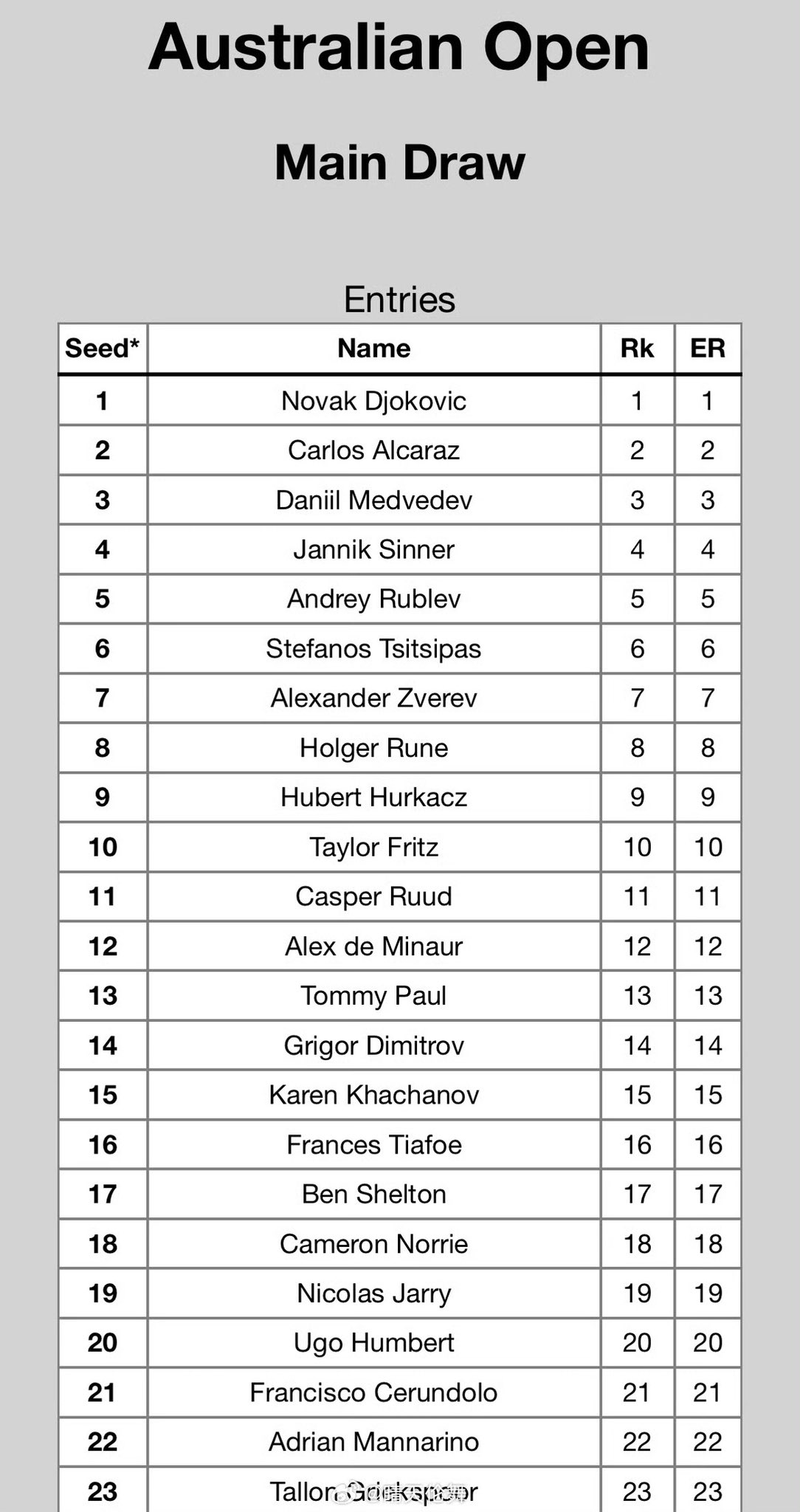 Melanie Lautrup on X: “The Australian Open 2024 Men Entry List